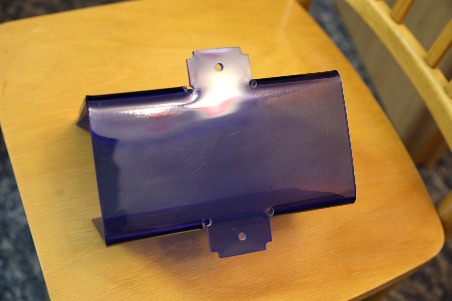 Ohýbáme. Na horkovzdušnou pistoli nasadíme nějaký zužující nástavec, a ohříváme v místě ohybu. Pokud možno pistoli spouštět na nižší výkon a ohřívat pozvolna. Pokud si nejsme jisti jestli už je plexi dostatečně prohřáté, tak ještě chvíli pokračujeme. Ono to snad na ten nižší výkon nejde ani přehřát. Poté to ohneme. Na ohýbacím přípravku (to je např. ta stará skříň) to musíme držet přitlačené po dobu chladnutí což je cca několik minut. Jako přítlačné destičky se osvědčily kuchyňská prkýnka. Horší je druhý ohyb. Ten už nejde udělat o skříň, ale musí se najít nějaký dřevěný hranolek, nebo si potřebnou výšku složit třeba z prkýnek.