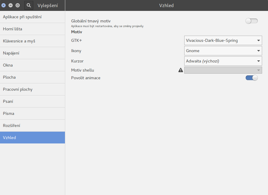 Naistalovat motiv vivacious-colors-gtk-dark_16.04.4~xenial~NoobsLab.com_all.deb a ve Vylaďovacím nástroji nastavit.