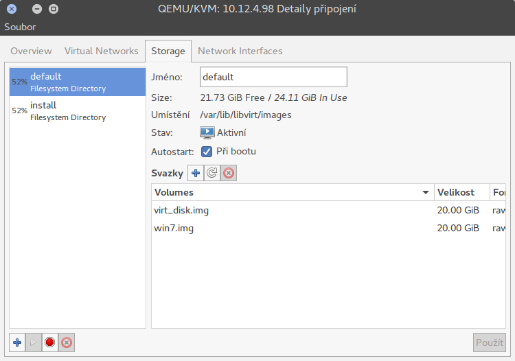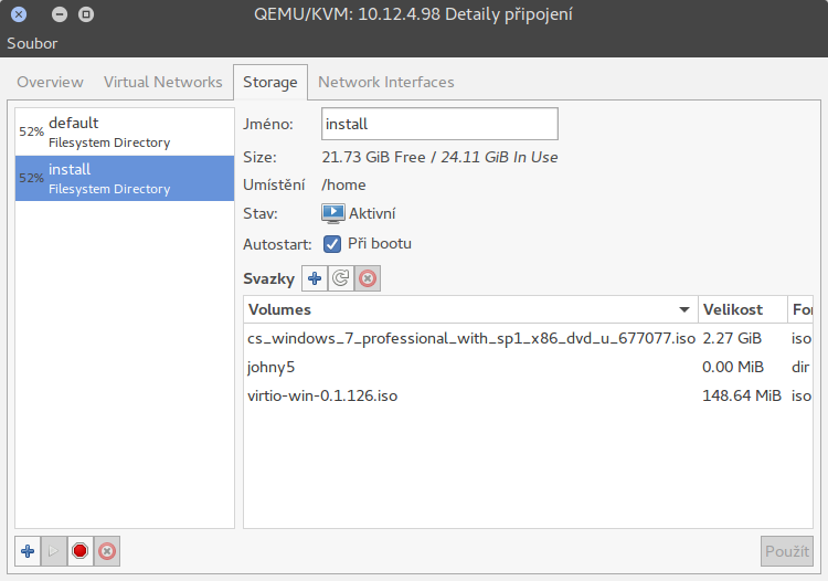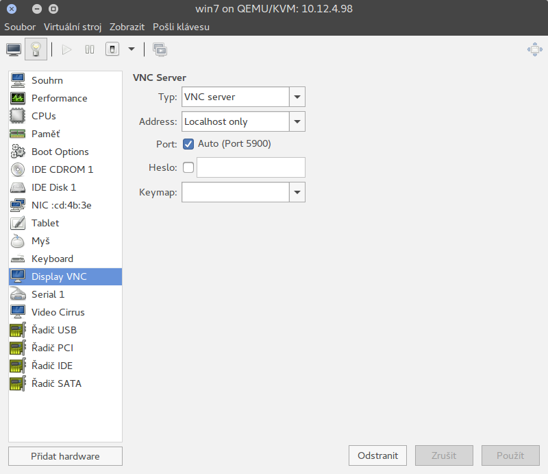 a potom na PC nainstalovat Virtual Machine Manager a nastavit: